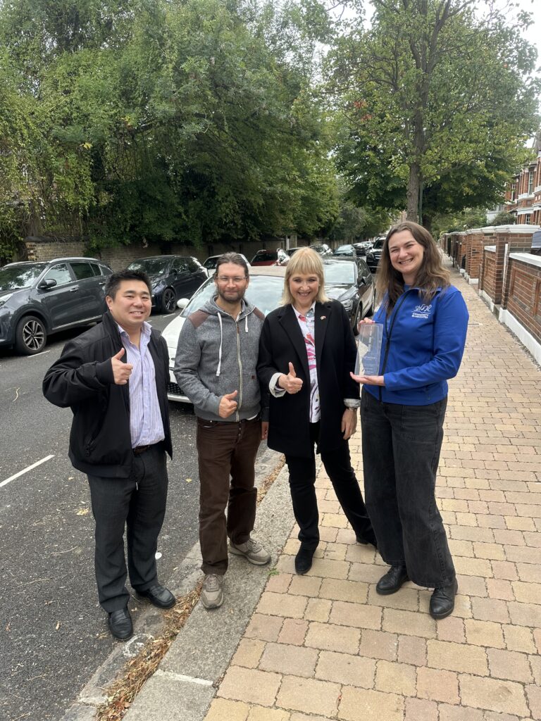Two years on, we’ve seen real progress: rain gardens, widening Beverley Brook to increase flood storage, and the Kitson Road retrofit with porous surfaces, Hydrorock storage and EV-charging channels. The Kitson Road project recently won the Steve Berry Highways Innovation Award at the 2025 National Highways Awards – a fantastic recognition of community-led innovation. Work has also begun on improving The Terrace and Lonsdale Road for pedestrians.