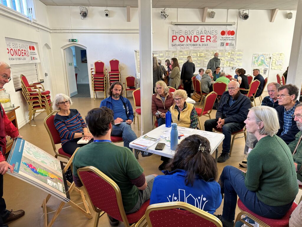 Another important part of Ponder 2 was the work of Community BlueScapes, a partnership between the council, Barnes Common CIC and the London Wetland Centre. Together we explored how to make Barnes more flood-resilient while boosting biodiversity. With so many people now walking and cycling, there was also a strong focus on sustainable movement.